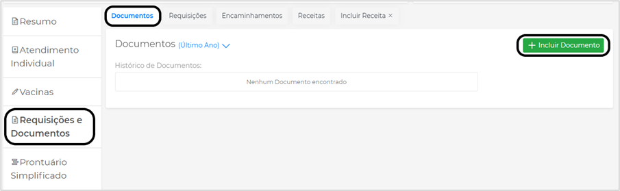 Para incluir um documento, clique em Documentos, selecione o documento desejado e clique em Incluir: