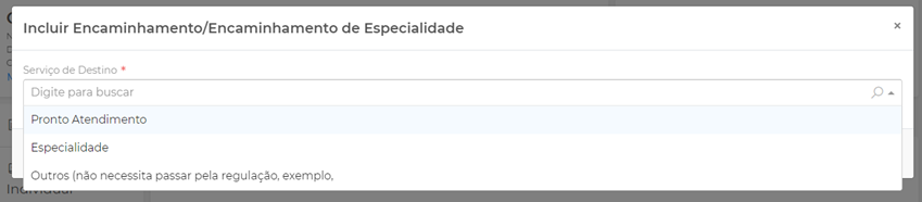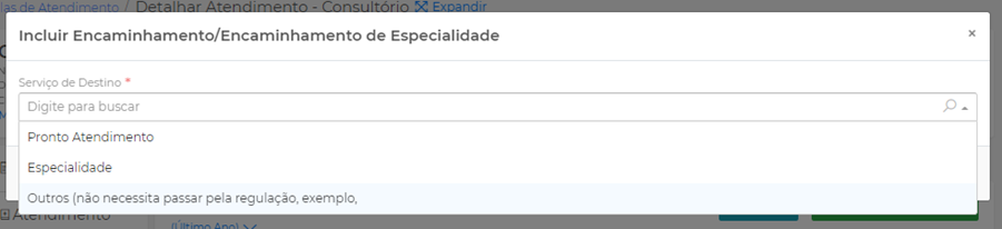 Outros Encaminhamentos: são os encaminhamentos que não necessitam passar pela Regulação, como por exemplo para a Casa Rosa, NAPS etc.:
