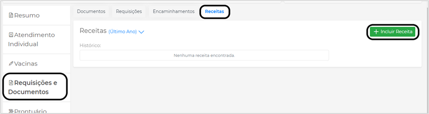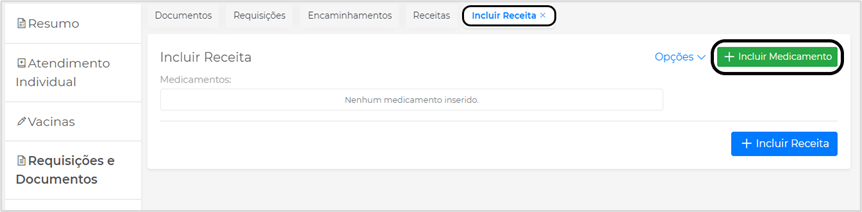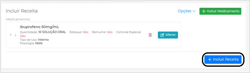 Após o registro dos medicamentos, clique em Incluir Receita para fazer a impressão dela: