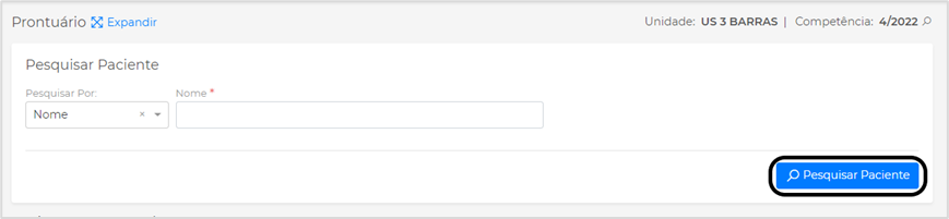 Digite o nome do paciente que deseja visualizar o prontuário e clique em Pesquisar Paciente: