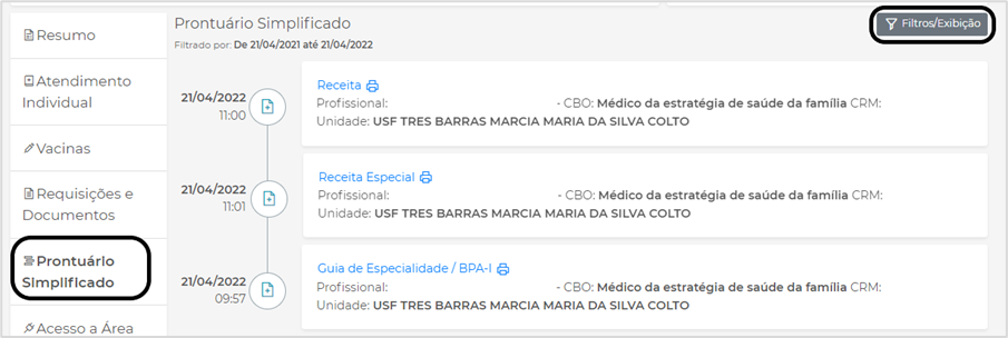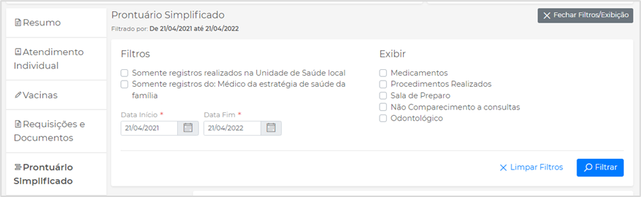 Em Filtros, o profissional pode escolher como deseja fazer a pesquisa. Selecione os filtros desejados e clique em Filtrar: